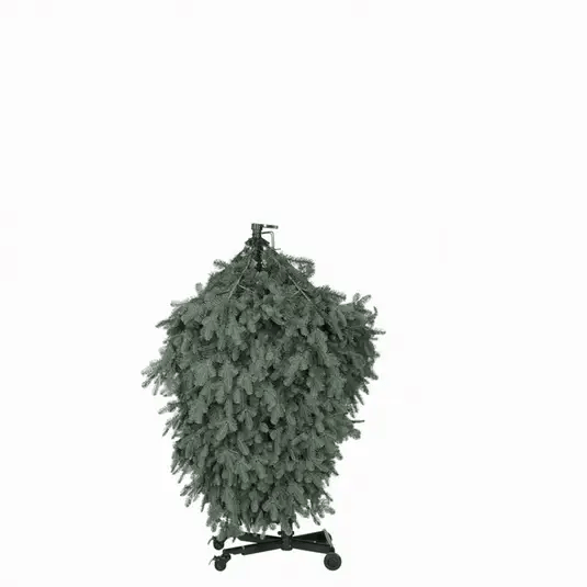 Effortlessly roll the tree into place on its wheeled base, lock it securely, flip it upright, and attach the lightweight top—
